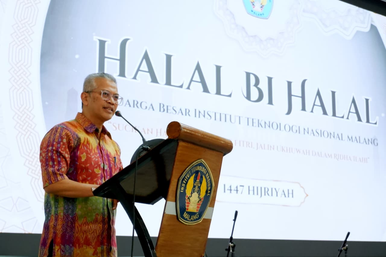 Rektor ITN Malang, Awan Uji Krismanto, mengajak seluruh civitas menjadikan halalbihalal sebagai ruang refleksi di tengah kompleksitas dunia pendidikan. Ia menyoroti meningkatnya beban kerja dosen dan tenaga kependidikan, mulai dari tuntutan publikasi hingga adaptasi sistem digital.